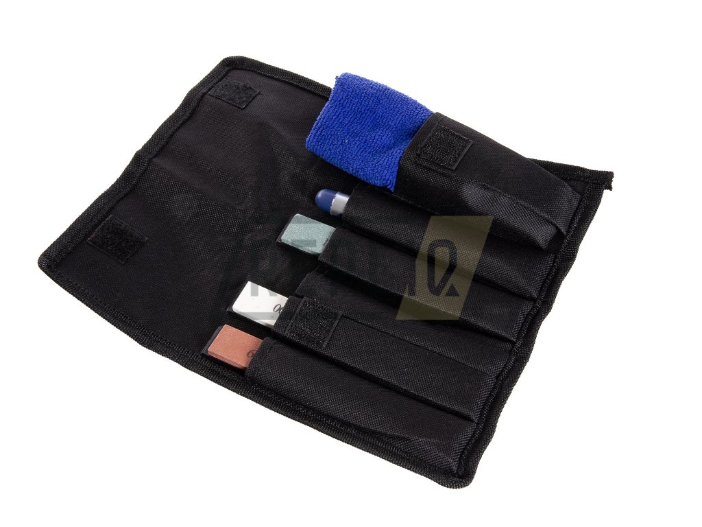 Stolní brousek firmy Wildee zásadním způsobem mění možnosti broušení. V jedné krabici dostaneme sadu brusných kamenů čtyř zrnitostí (120, 320, 600,1500) společně se stojanem. Kámen připevněný k posuvné páce lze nastavit pod libovolným úhlem. Lze rovněž použít označenou barevně stupnici úhlů pro konkrétní druhy nožů. Příslušenství jako kameny a díly stojanu jsou přehledně zabaleny v černém nylonovém organizéru.