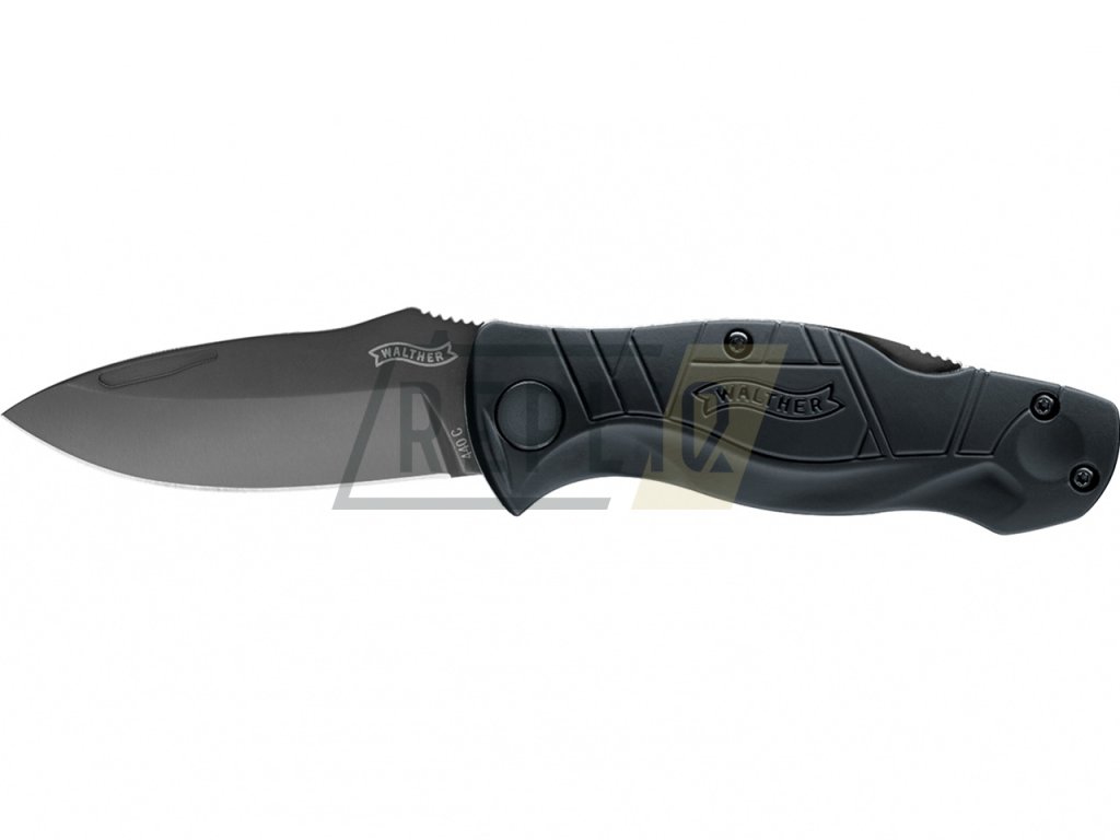Taktický zavírací nůž Walther Traditional Folding Knife TFK II je vybavený klasickou čepelí typu Drop Point v matně titanovém provedení. Čepel je vyrobená z nerezové oceli 440C, která se vyznačuje vysokou odolností proti korozi a dlouhou trvanlivostí. Ostří čepele je po celé délce hladké. K vysunutí čepele slouží klasický výřez. V otevřené pozici je čepel zajištěná pojistkou Back Lock.