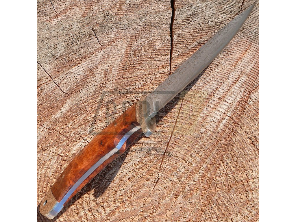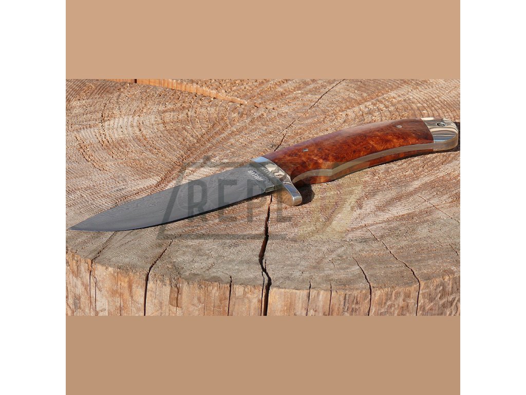 Nůž z damaškové oceliNůž z damaškové oceli dodáváme s kvalitní koženou pochvou. Pochva má poutko na opasek (max 4 cm).