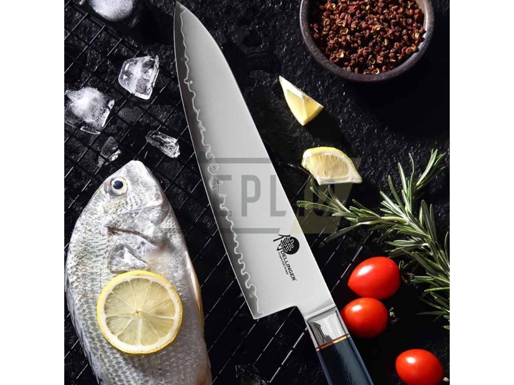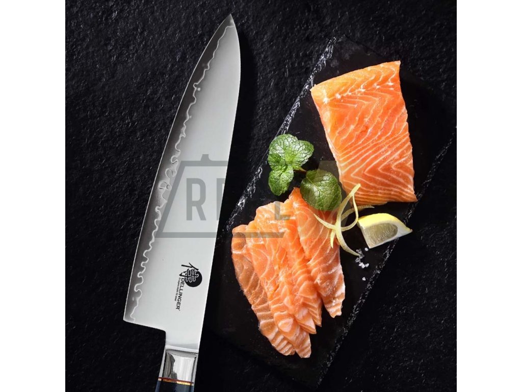 Ostrý kuchyňský nůž Chef ze série Dellinger Okami 3 layers AUS10