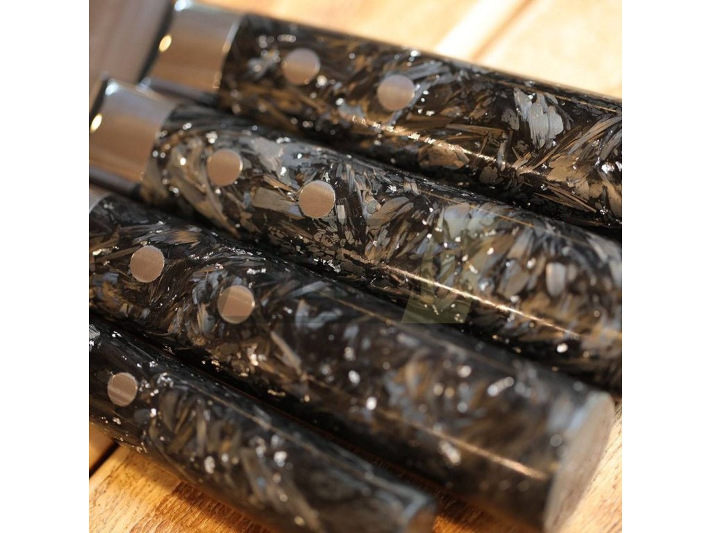 Velmi lehká karbonová rukojeť působí moderním a téměř dokonalým dojmem. Stane se klenotem Vaší kuchyně a společně s mimořádným ostřím poskytne vzrušení a výkon, který Vás nadchne. Dvojité nýtování zajišťuje dokonalou pevnost, stabilitu a spojení zářícího ostří a rukojeti z materiálů určených pro vesmírný program.