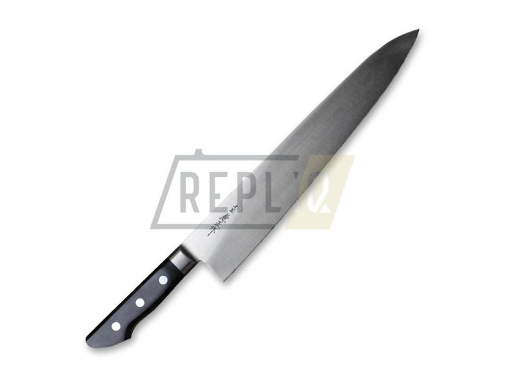 Kuchařský nůž Gyuto ze série Kanetsune Honsho Kanemasa E-series. Nůž Gyuto je japonskou verzí západního kuchařského nože. Lze jej používat s různými technikami krájení pro širokou škálu kuchyňských úkolů a je vhodný pro krájení naprosté většiny druhů masa, ryb, zeleniny a ovoce. Je skutečně víceúčelový a práce s ním je hbitá a přesná.