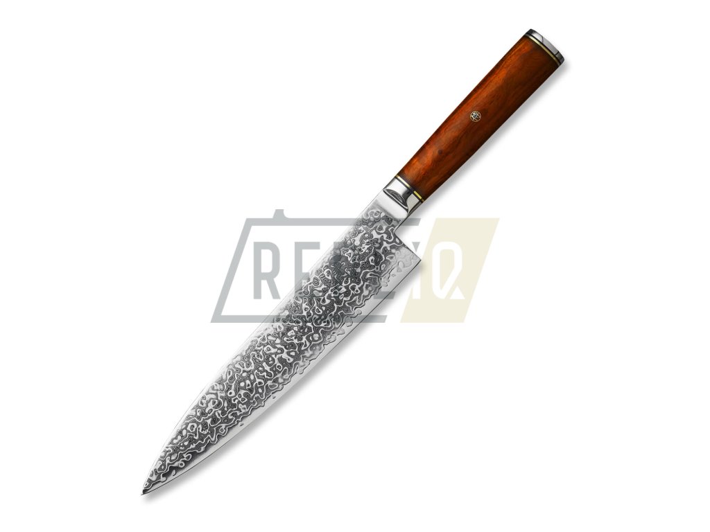 Nůž Gyuto/Chef je ideální pro všestranné využití. Díky tomu, že se hřbet nože a ostří zužují do špičky, má ideální tvar pro každý druh krájení. Je vhodný pro porcování masa, krájení ryb, plátkování, čištění masa a ryb, ovoce a zeleniny. Výše položený hrot Vám umožní i kolébkové krájení bylinek nebo ořechů. Název „Gyuto“ znamená doslova „kráječ masa“, což naznačuje jeho původní účel, ale tento nůž je dnes ceněn pro svou schopnost zvládnout širokou škálu kuchyňských úkolů.