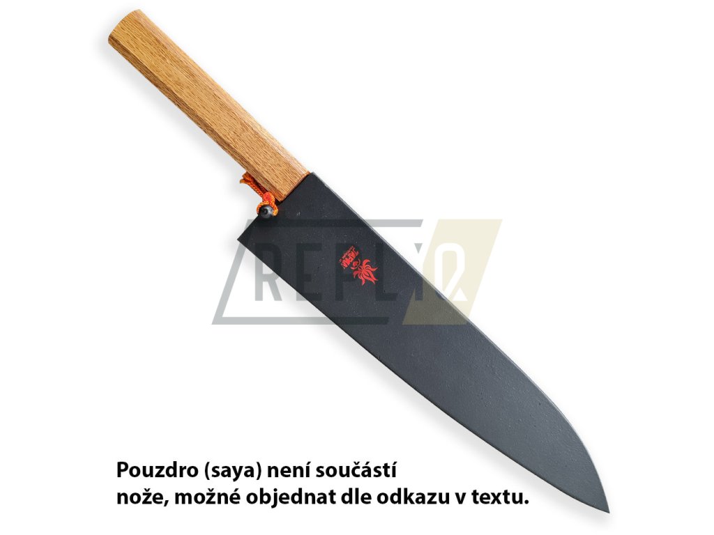 Rukojeť oktagonového tvaru je vyrobena z krásného japonského dubového dřeva. Rukojeti jsou navrženy tak, aby dokonale padly do ruky a poskytovaly pohodlí. Nože jsou dokonale vyvážené a zabraňují únavě rukou. Tím je zajištěna maximální kontrola a přesnost. Tento nůž je vhodný pro použití pravou i levou rukou.