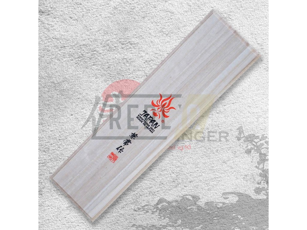 V českém překladu to znamená „vlny na vodní hladině“. A když se zadíváte na atraktivní damaškovou čepel, tak skutečně vypadá jako vlny na hladině oceánu. Je složena ze 101 vrstev damaškové oceli s jádrem z vysokořezné práškové oceli o tvrdosti HRC 60,5-61,5. Japonská tradiční oktagonová rukojeť „八角 柄“ je vyrobena z černého dřeva Plywood a je vkusně doplněna červenými proužky z micarty, na konci rukojeti je vyrytý znak Kanetsune. Způsob uchycení čepele rukojeti Etsuke je zde tzv. naražení na trn, kdy se čepel zahřeje a narazí se do rukojeti. Tento nůž je dodáván v luxusní dřevěné krabici s japonskou sayou (dřevěný kryt na čepel), který je vyroben ze dřeva magnolie s tradiční povrchovou úpravou "Kuro-Ishime".