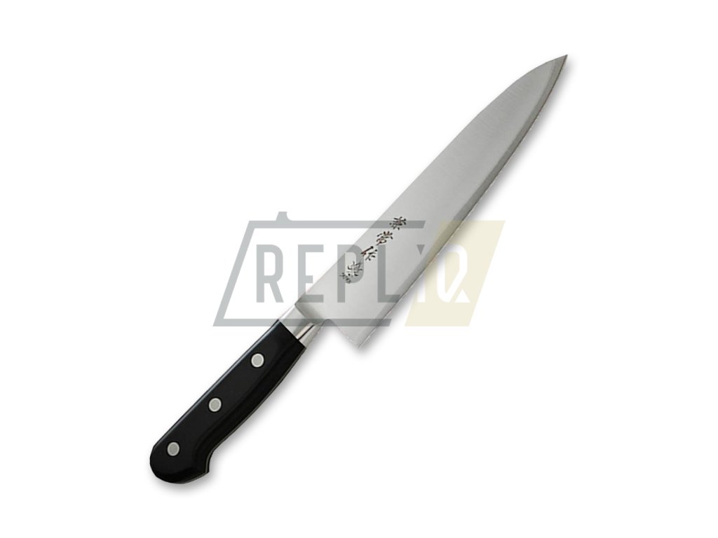 Velmi ostrý nůž Gyuto ze série Kanetsune KC-120 Aogami series. Hřbet nože Gyuto a jeho ostří se zužují do špičky pro všestranné využití mimořádné řezné síly. Krájení, plátkování, čištění masa, ovoce a zeleniny – nic nebude pro tento jedinečný nůž japonského tvaru problémem. Kuchařský nůž Gyuto je díky výše položenému hrotu, též vhodný ke kolébkovému krájení bylinek, zeleniny a ořechů.