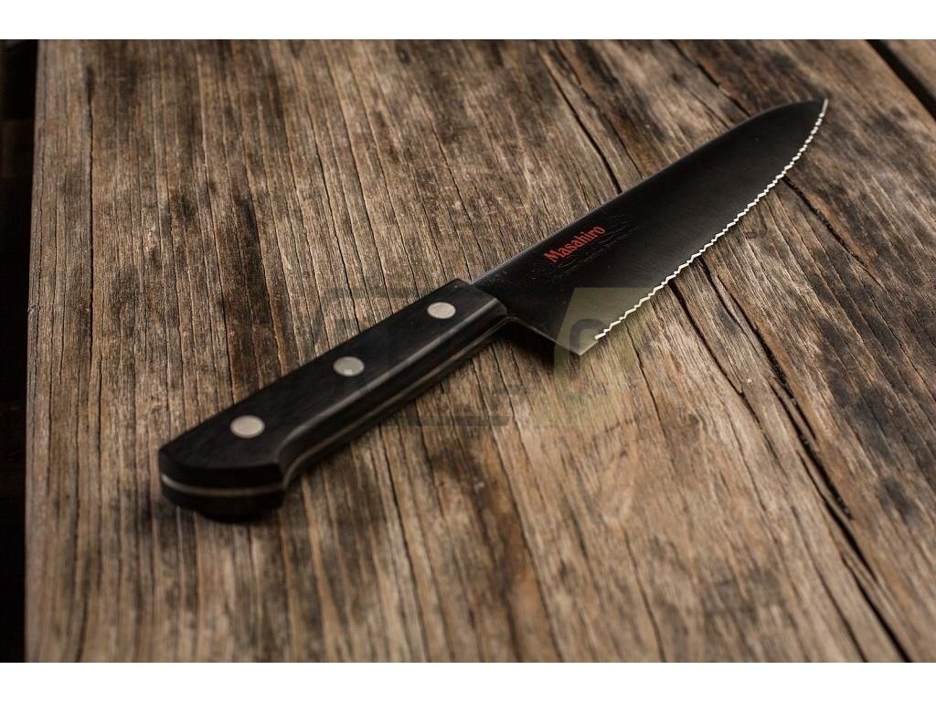 BWH je řada nožů vyrobených podle vzoru nože MV-H. Používá také molybden-vanadovou, vysoce uhlíkovou, nerezovou ocel MBS-26který byl podroben třístupňovému procesu kalení, dokud nedosáhne tvrdosti 58-59 HRC. Každou čepel dovedli k dokonalosti řemeslníci s více než 30letou praxí, čímž se nože Masahiro dostaly na úroveň bezkonkurenční a nevídané ostrosti.