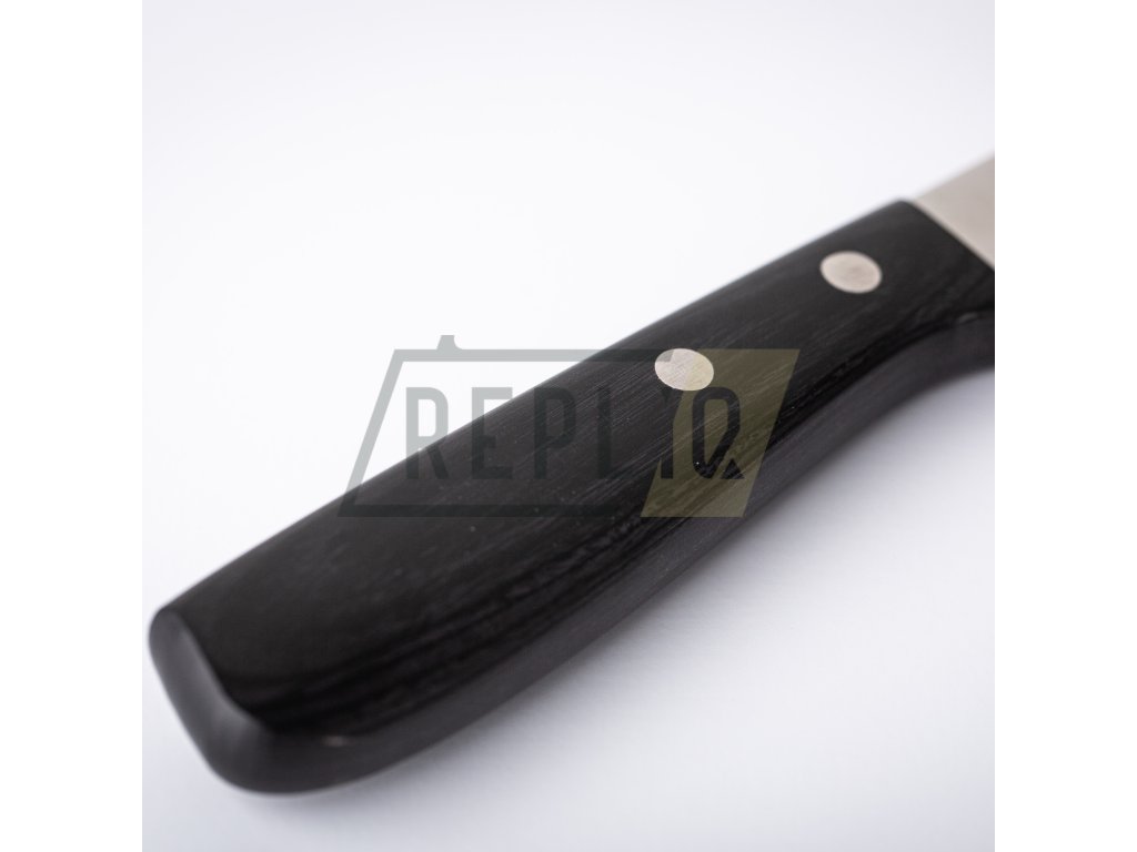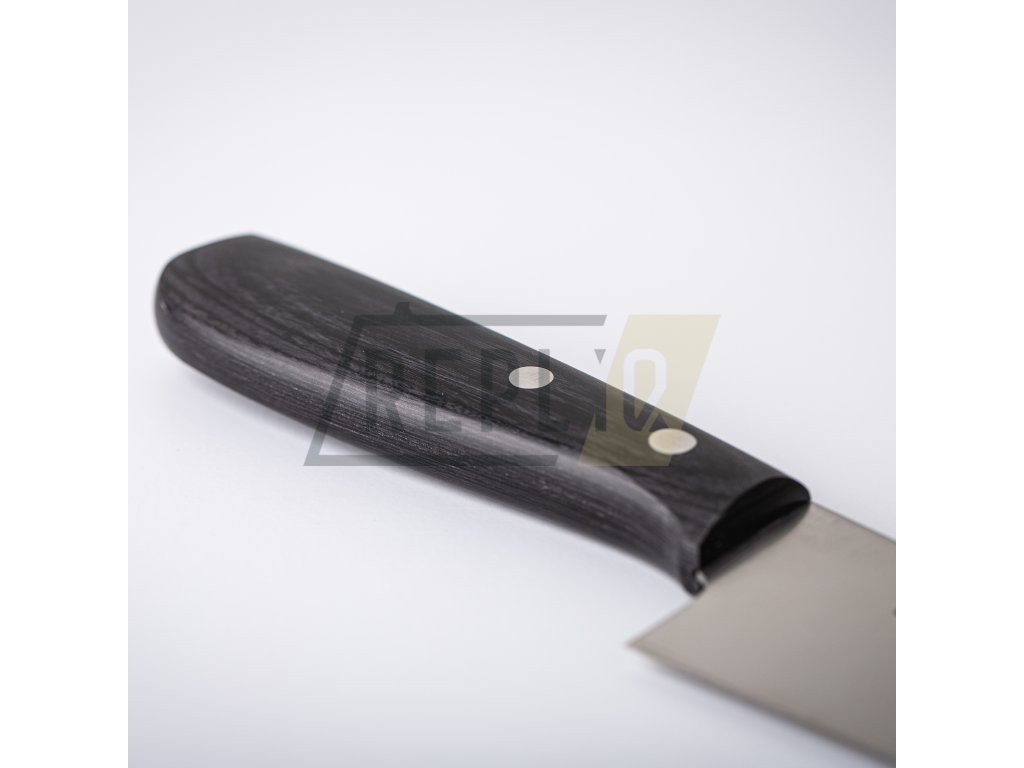 Rukojeť vyrobená z antibakteriálního dřeva pakkawood je dokonale tvarovaná a opracovaná, takže nůž působí jako přirozené prodloužení ruky a práce s ním je snadná a velmi příjemná.