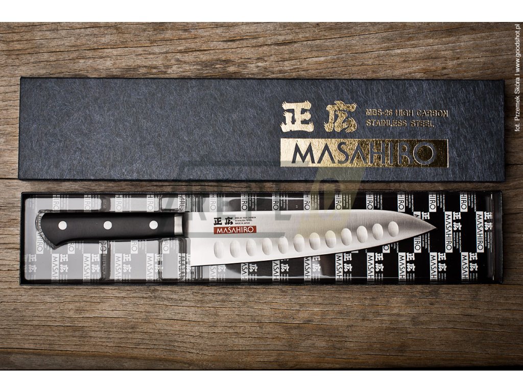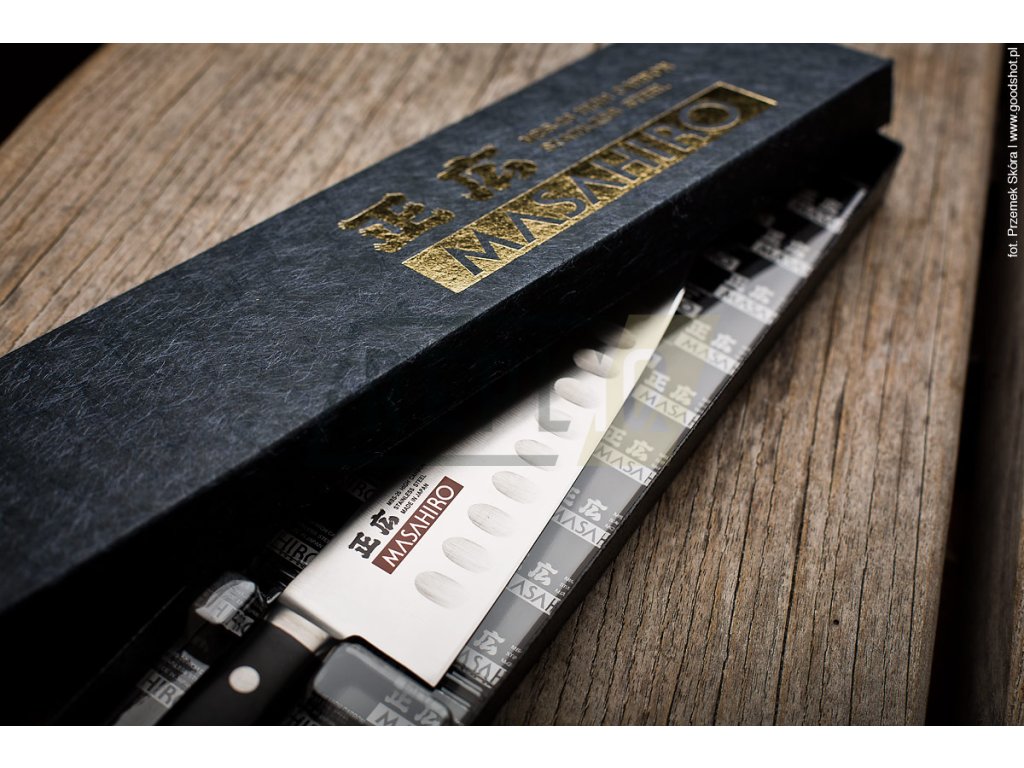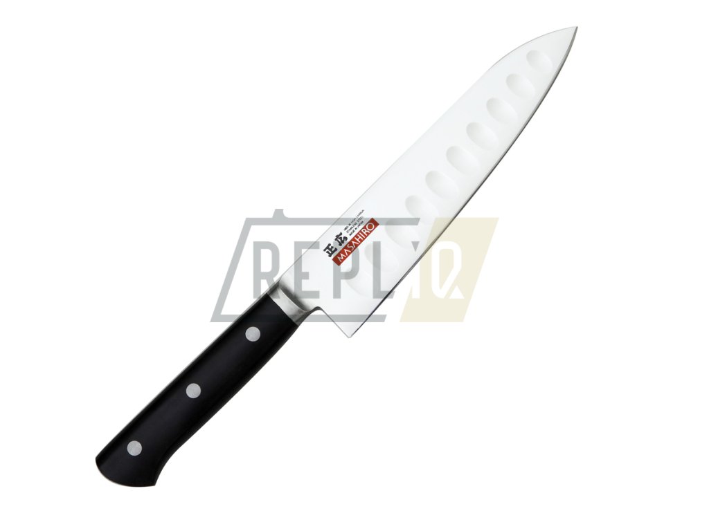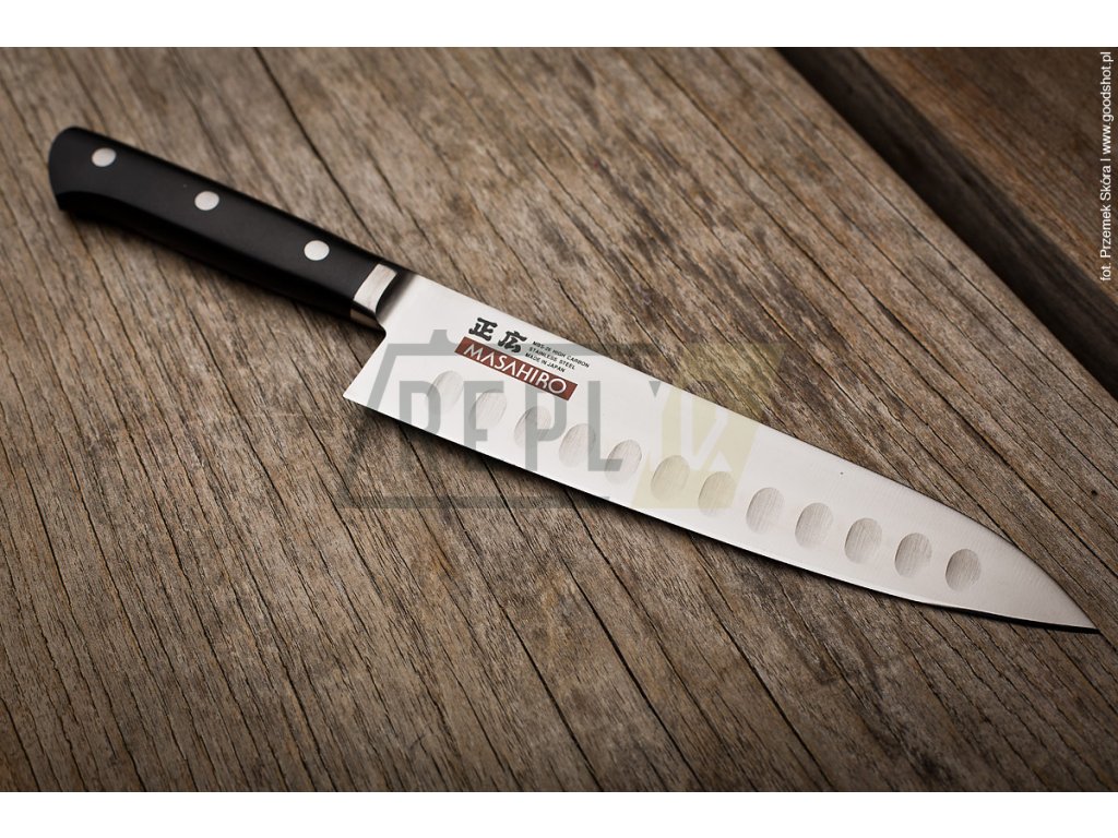 Masahiro MV-H Šéfkuchař Dimple je jedním z nejčastěji volených nožů do kuchyně, a to jak profesionálními, tak amatérskými kuchaři. Charakteristický tvar nože, který pochází z francouzské kuchyně, se používá k mnoha kuchyňským pracím a název kuchařský nůž podtrhuje skutečnost, že je nepostradatelným nástrojem každého kuchaře. Nůž je velmi lehký a rukojeť dobře padne do malé i velké ruky. Díky dokonalému vyvážení čepele a rukojeti umožňuje rytmický, velmi účinný kývavý pohyb po povrchu při krájení nebo sekání různých produktů.