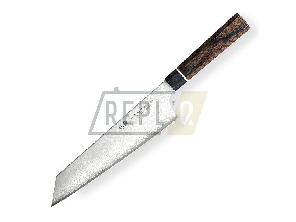 Extrémně ostrý japonský nůž ze série Suncraft VG-10 Black Damascus. Nůž Kiritsuke je často prohlašován za fúzi mezi šéfkuchařským nožem a Nakiri, což vám přináší výhody obou zmíněných. Vyšší faseta snižuje tření, krájení je tak přesnější. Nůž Bunka je dokonalým společníkem při práci s masem, rybami, zeleninou a ovocem. Nepřekonatelné vlastnosti nože oceníte například při krájení cibule. Trojúhelníková oblast hrotu je zvláště užitečná pro detailní práci. Ostrost čepele zajistí minimální únik tekutiny a vaše pokrmy budou plné šťávy a vitamínů. Široká čepel a rukojeť v octagonovém tvaru Vám poskytne tu nejlepší kontrolu při řezání a krájení. Japonské umění, preciznost a nové technologie činí tento nůž z damascénské oceli jedinečným a nenapodobitelným.