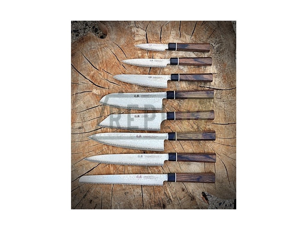 Překrásný všeobecně použitelný kuchyňský nůž ze série Suncraft VG-10 Black Damascus. Nůž Bread na chléb a pečivo má dlouhou a dostatečně silnou čepel, která je ideální pro krájení chleba a pečiva. Tento nůž je nepostradatelný v každé kuchyni a pekařství. Velký chléb, měkký chléb, velké melouny a pečivo již nebudou problém. Japonské umění a nové technologie činí tento nůž jedinečným a nenapodobitelným.