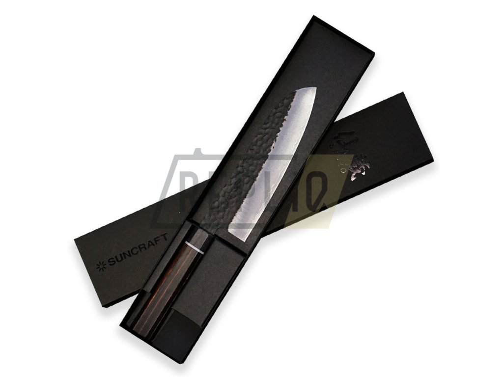Inovativní a propracované nože ze série Suncraft Senzo Finest SPG STRIX® jsou vhodné jak pro praváky, tak pro leváky. Každý kuchař, ať už profesionál nebo nadšený amatér ocení tvrdost jádra 65 HRC a tradiční černý "Kurouchi" finiš s efektem Tsuchime (kladívková úprava). Tento povrch dodává noži jedinečný rustikální vzhled, ale zároveň pomáhá snižovat tření a zabraňuje přilepení krájených surovin k čepeli.