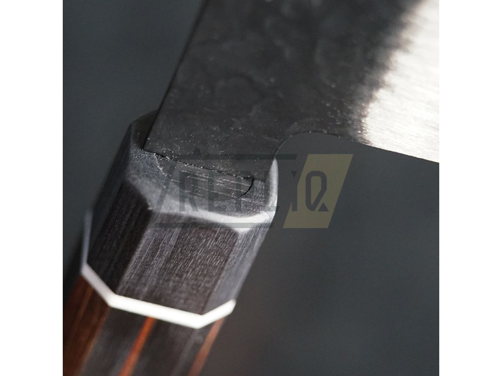 Osmihranná rukojeť asijského stylu PakkaWood s imitací tropického dřeva ZebraWood, známý také jako Microberlinia brazzavillensis, je exotická dřevina pocházející z tropických oblastí západní Afriky. Je ceněná především pro svůj výrazný pruhovaný vzor, který připomíná zebří srst, což jí dodává nezaměnitelný estetický charakter. Rukojeť z tohoto dřeva nejen skvěle vypadá, ale také nabízí příjemný úchop, který ocení každý uživatel.