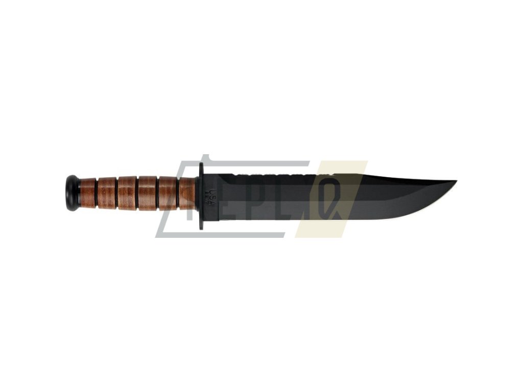 Masivní lovecký či bojový nůž v nezaměnitelném designu Ka-Bar. Široká čepel tvaru Bowie s hladkým ostřím a pilkou na hřbetu je vyrobená z vysokouhlíkové oceli 1095 o tvrdosti 56-58 HRC s černou povrchovou úpravou z epoxidového prášku. Rukojeť nože je vyrobena ze stlačené a broušené kůže s výraznými drážkami pro jistější úchop. Rukojeť je ohraničena vpředu výraznou oboustrannou záštitou a vzadu hruškou, která fixuje pozici rukojeti. Nůž je dodáván s koženým pouzdrem s poutkem na provlečení opasku.