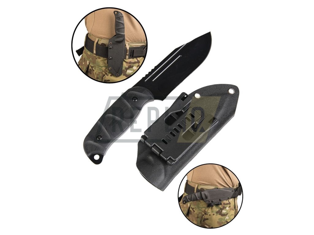 - individuální upevnění nože pružným pouzdrem Kydex®