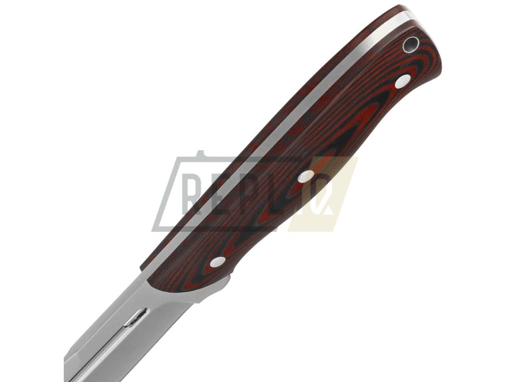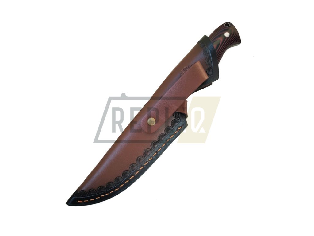 Lovecký full-tang nůž příjemného vzhledu dodávaný se zdobeným koženým pouzdrem, ve kterém je nůž jištěn pomocí druku. Do vysokého lesku leštěná čepel s hladkým ostřím je vyrobená z nerezové oceli 3Cr13Mov, na jejím konci se nachází záštita bránící nechtěnému poranění při sklouznutí ruky. Rukojeť je anatomicky tvarovaná, střenky jsou z materiálu Micarta a její konec je opatřen otvorem na provlečení pojistné šňůry.