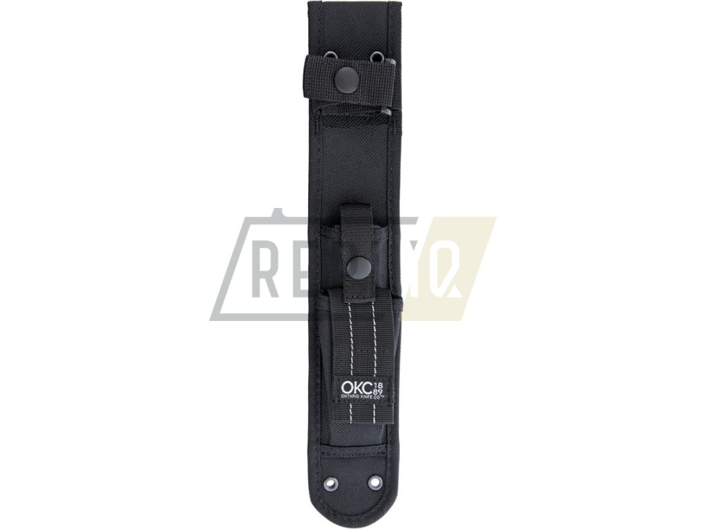 Součástí balení je černé nylonové pouzdro, které můžete navléci na opasek do šířky až 5,5 cm. Další variantou je využití MOLLE vazby, která je na zadní straně pouzdra a umožňuje připevnění k jakémukoli vybavení, které je s MOLLE vazbou kompatibilní - batoh, taktická vesta apod. K zajištění pouzdra můžou posloužit dva otvory s kovovými oky ve spodní části a dva otvory ve vrchní části. K zajištění samotného nože v pouzdře slouží pásek s drukem, který nůž připne křížem a druhý, širší pásek v horní části rukojeti, který je lehce délkově nastavitelný. Ve spodní přední části je menší kapsa se suchým zipem, která je vhodná pro uložení menšího zavíracího nože, křesadla, brousku, malé nouzové sady na přežití apod.