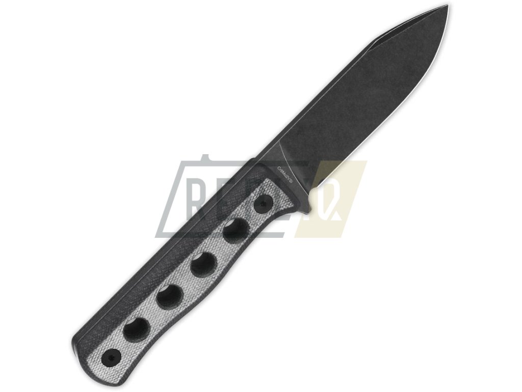 Robustní nůž s pevnou čepelí a odolnou full-tang konstrukcí. Čepel nože tvaru Drop point s hladkým ostřím a plochým výbrusem je vyrobená z kvalitní nerezové oceli Cr8Mo2VSi, černěná, s povrchovou úpravou Stonewash.
