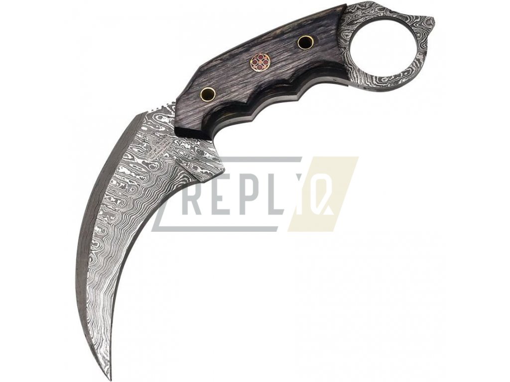 Full-tang nůž typu Karambit. Typicky zahnutá čepel disponuje hladkým ostřím a je vyrobená ze stylové damaškové oceli. Rukojeť je anatomicky tvarovaná a na její výrobu bylo použito dřevo pakkawood v černé barvě. Konec rukojeti je opatřen výrazným kroužkem pro palec a trnem na rozbíjení skla. K noži je dodáváno opaskové kožené pouzdro s jištěním pomocí pásku s kovovým drukem.