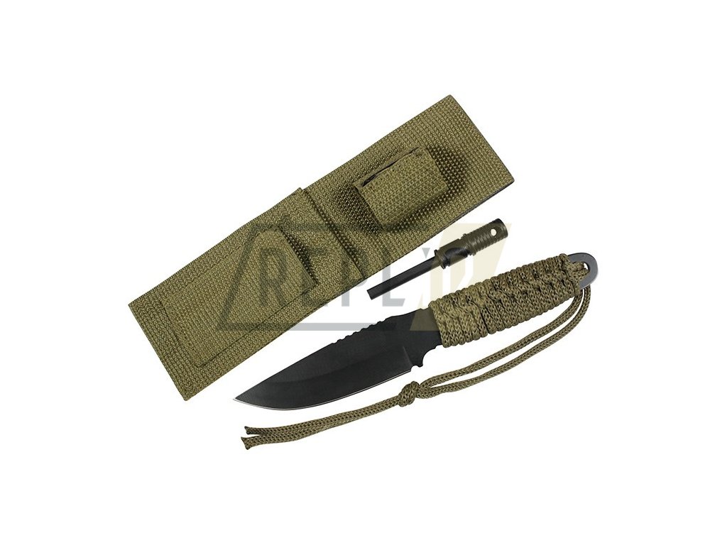 Nůž PARACORD s pevnou čepelí + křesadlo ZELENÝ