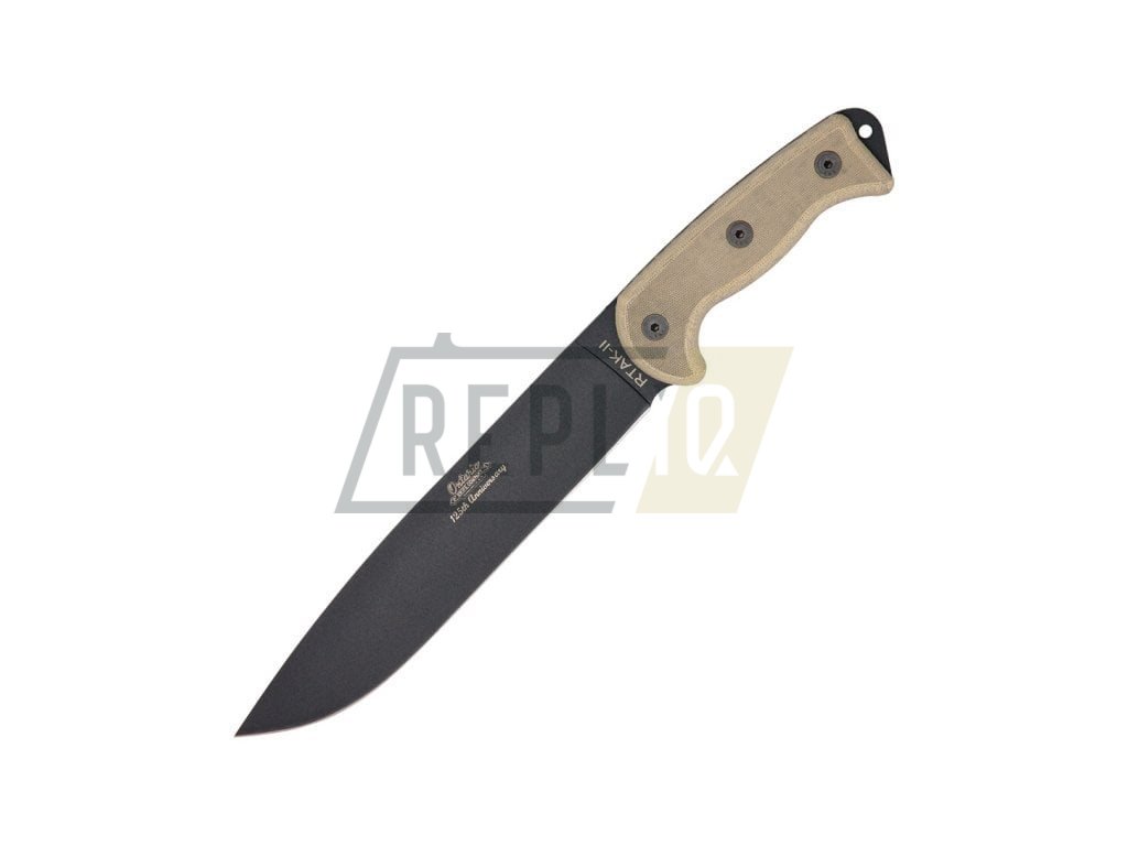 Masivní nůž s pevnou čepelí a full-tang konstrukcí z limitované edice vyrobené k 125. výročí značky ONTARIO. Čepel s hladkým ostřím je vyrobená z kvalitní uhlíkové oceli 5160 s černým práškovým povlakem zlepšujícím ochranu vůči rzi. Střenky jsou pokryté jemnou texturou a na jejich výrobu byla použita Micarta, což je materiál tvořený extrémně pevnými organickými vlákny, které jsou za vysokých tlaků lisovány a následně zapečeny. Výsledkem je lehký a odolný produkt ideální na použití v nožířství. Na konci rukojeti naleznete otvor na provlečení pojistné šňůry. K noži je dodávané černé kožené opaskové pouzdro.