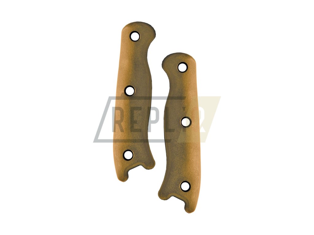 Součástí balení je nejen MOLLE kompatibilní pouzdro, ale sada hnědých střenek - sami si zvolíte, jakou barvu bude mít váš nůž.