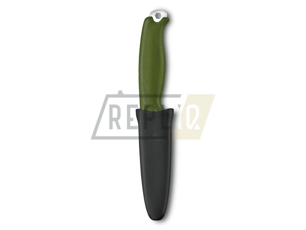 Součástí je pouzdro, do kterého nůž bezpečně uložíte. Je symetrické, takže čepel lze vložit oběma směry a je stejně vhodné pro praváky i leváky. Otvory v pouzdře zajišťují, že čepel nože po použití dostatečně vyschne. Upevněním pouzdra na nůž vznikne nástavec pro vrtání. Kromě toho všeho lze pouzdro použít také jako účinné dmychadlo pro rozdělávání ohně.