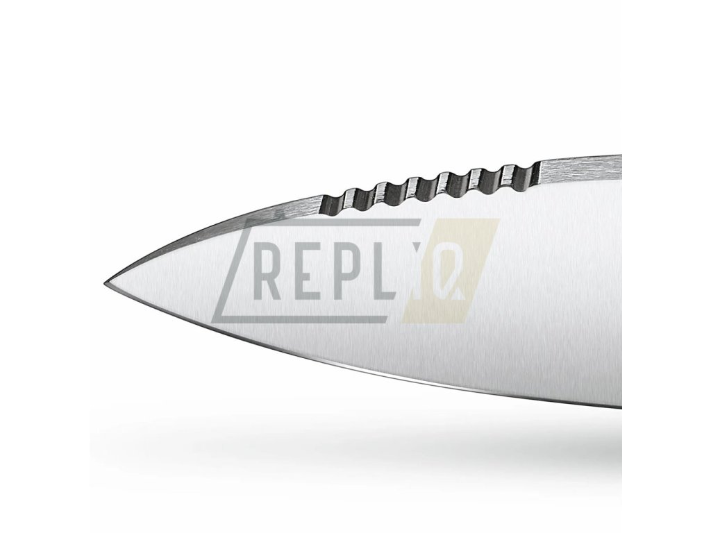 Čepel typu drop point poskytuje jemnou špičku pro přesné řezné úkoly. Přesto si tento jemný hrot stále zachovává dostatečnou pevnost pro provádění středně náročných pákových úkolů. Konstrukce Powerzone (profilované čáry označují zóny, kde lze vyvinout největší sílu), mikrostruktura a tvar ergonomické rukojeti zajišťují pohodlný a bezpečný úchop za všech povětrnostních podmínek. Rukojeť je vyrobena z mimořádně odolného polymeru (TPE).