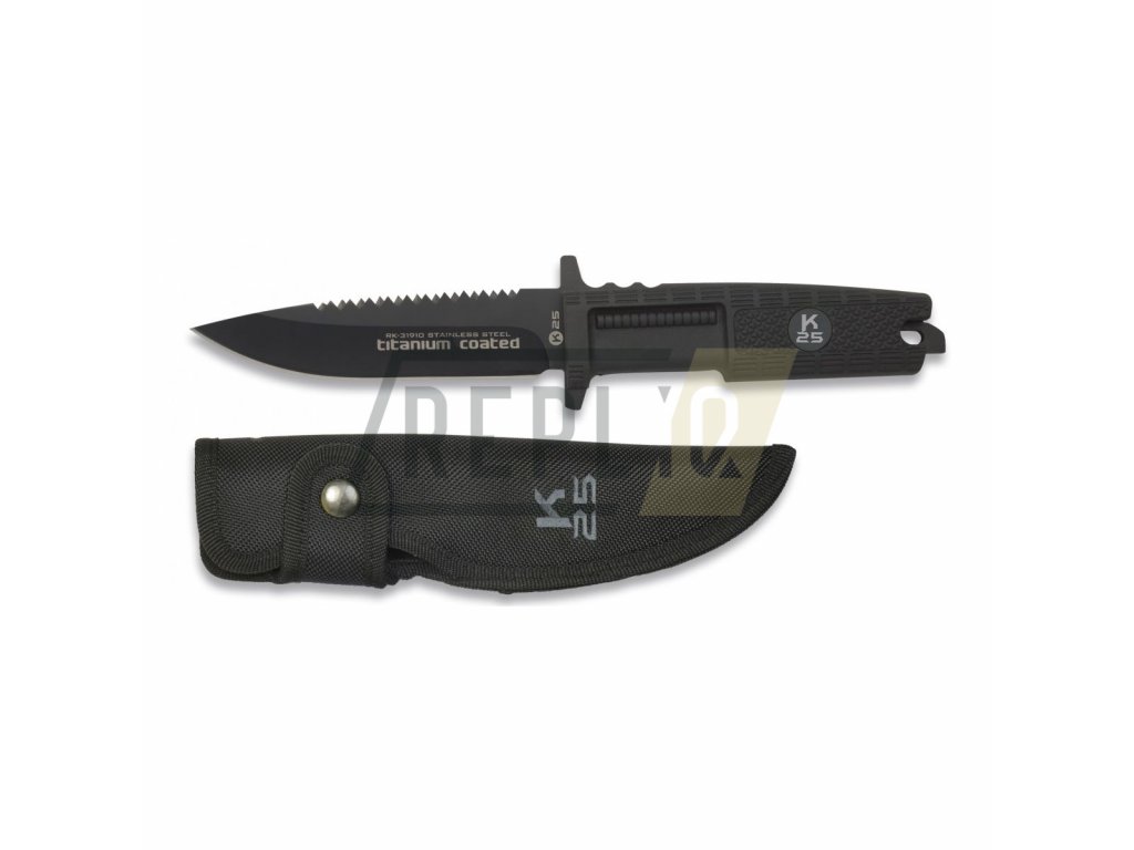 K25 je značka spadající pod španělskou firmu Martinez Albainox, kterou v roce 1990 založil podnikatel José Martínez za účelem produkce a prodeje kvalitních a specifických nožířských produktů. V sortimentu K25 naleznete opravdu široký výběr nožů, ať už zavíracích, tak i těch s pevnou čepelí. Společným jmenovatelem nožů značky K25 je využití kvalitní nerezové oceli (často s titanovým povlakem), odolných rukojetí a nadčasového designu.