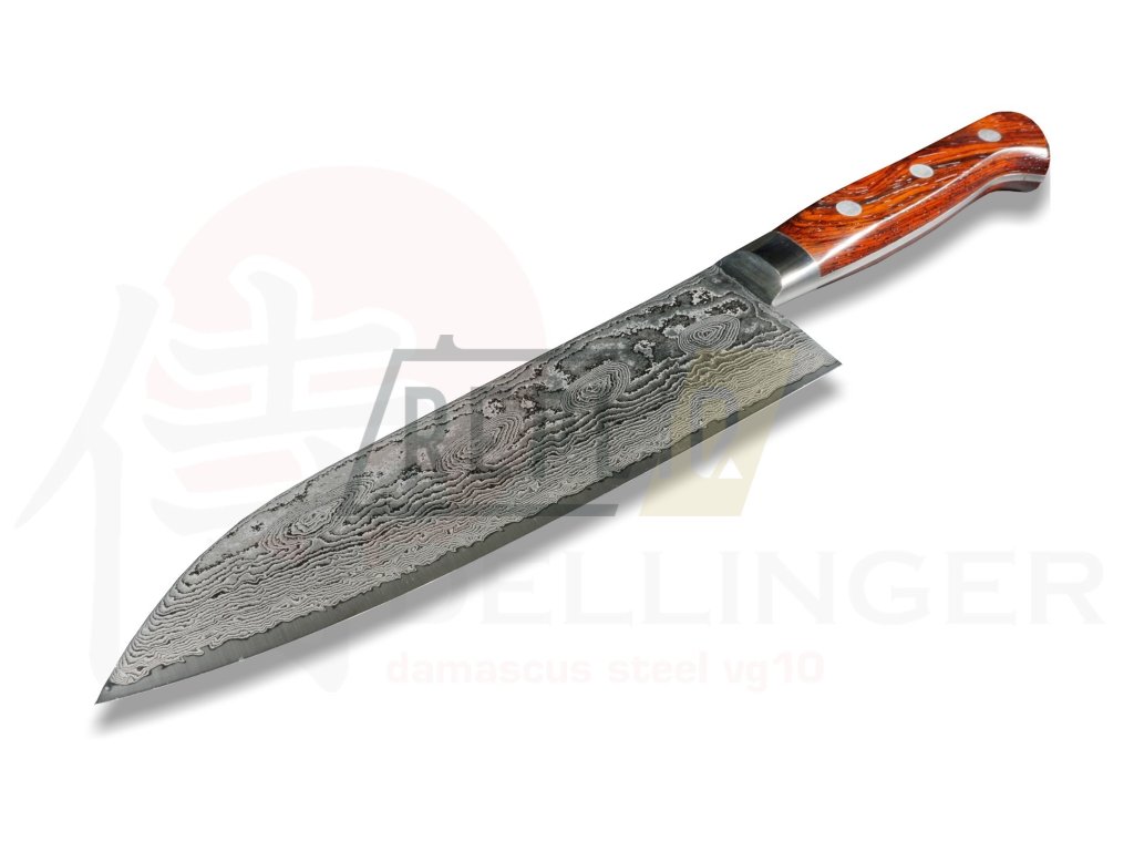 Tento exkluzivní nůž na zeleninu je vyroben z 49vrstvé damaškové oceli s jedinečným mramorovým vzorem, který je výsledkem mistrovského ručního kování. Jádro čepeli tvoří špičková Super-Gold prášková ocel, která zajišťuje chirurgickou ostrost, mimořádnou odolnost a dlouhotrvající řezné vlastnosti.