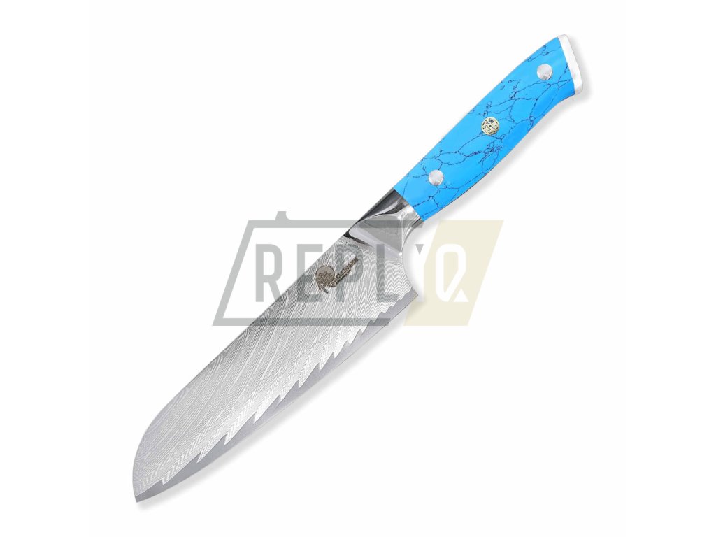 Nůž šéfkuchaře Santoku Dellinger Blue Stone VG-10 Damascus