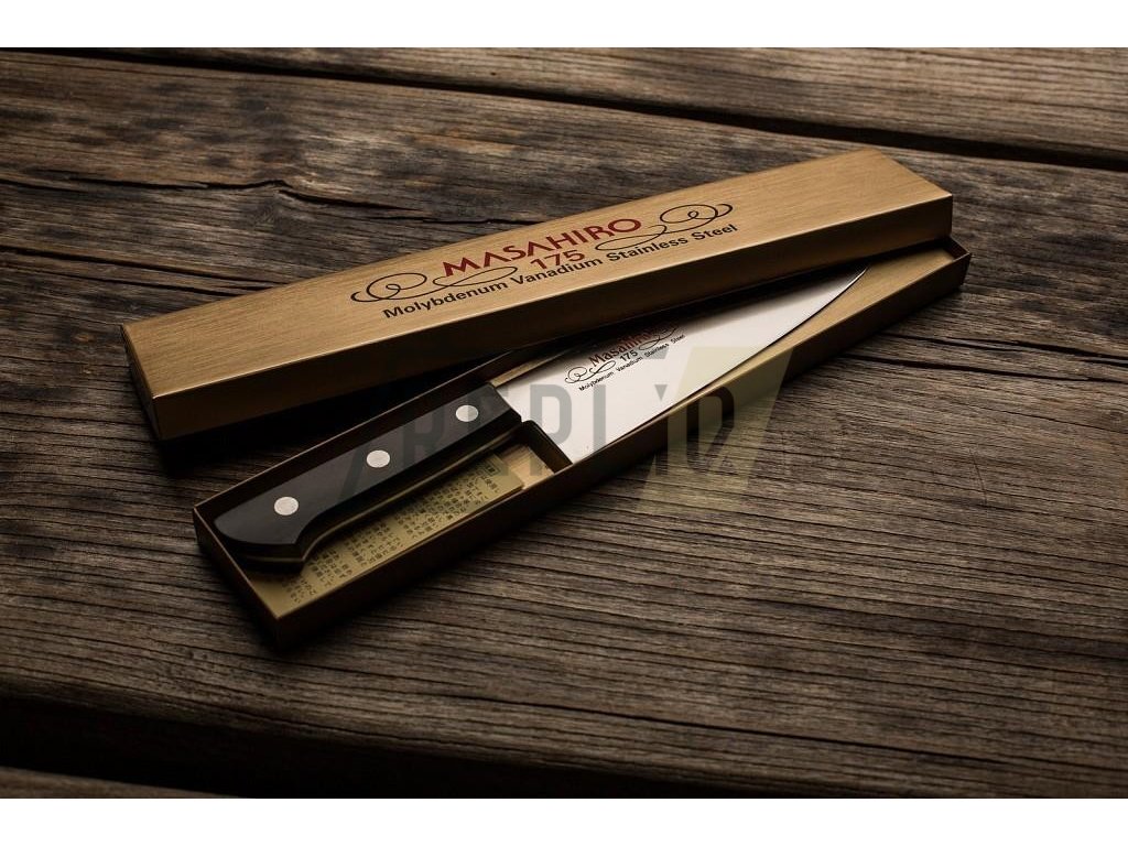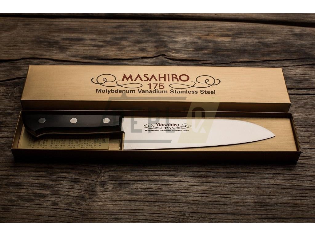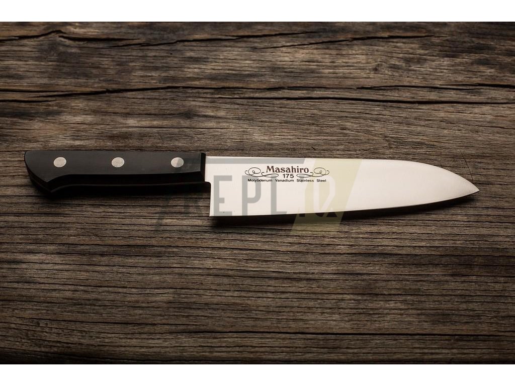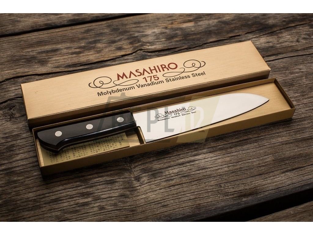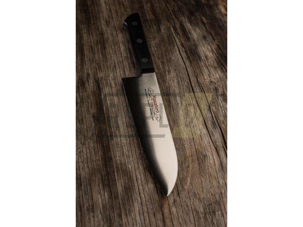 Masahiro BWH Santoku s délkou čepele 175 mm je tradiční japonský nůž, který je často označován jako ekvivalent západního kuchařského nože. Japonský název tohoto velmi oblíbeného nože znamená "tři ctnosti". To znamená, že tento nůž, jehož charakteristický vzhled připomíná kombinaci kuchařského nože a sekáčku, se velmi dobře hodí ke krájení masa, ryb a zeleniny.