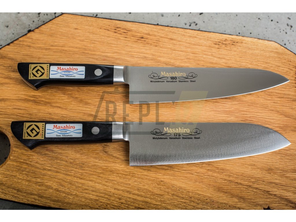 Série nožů MV jsou vyrobeny z molybden-vanadové, vysoce uhlíkové, nerezové oceli, tzv MBS-26, který byl podroben třístupňovému procesu kalení, dokud nedosáhne tvrdosti 58-59 HRC. Každou čepel dovedli k dokonalosti řemeslníci s více než 30letou praxí, kteří nože povýšili na dokonalejší Masahiro na nebývale ostrou úroveň.