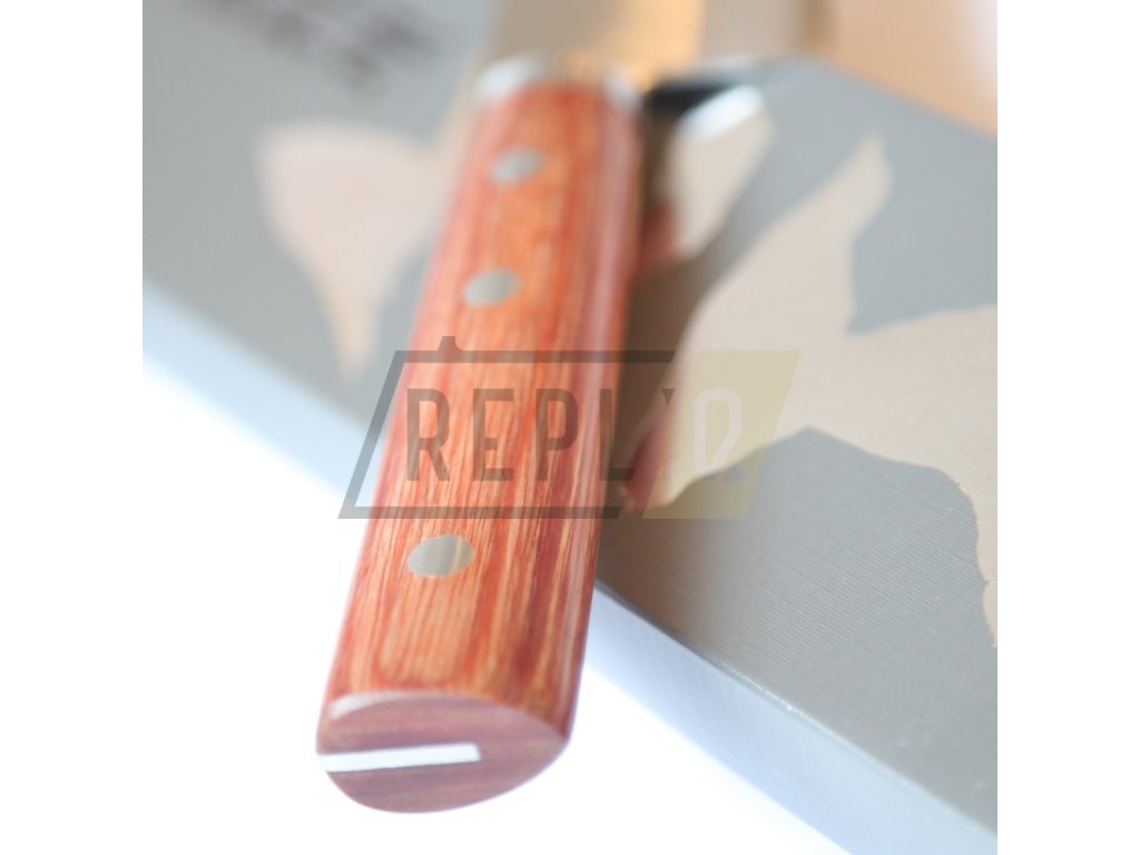 Čepel je obvykle kratší než kuchařský nůž s výrazně odlišnou geometrií. Nůž Santoku je často prohlašován za fúzi mezi šéfkuchařským nožem a nakiri, což vám přináší výhody obou zmíněných. Vyšší faseta snižuje tření, krájení je tak přesnější. SANTOKU je dokonalým společníkem při práci s masem, rybami, zeleninou a ovocem. Nepřekonatelné vlastnosti nože oceníte například při krájení cibule. Ostrost čepele zajistí minimální únik tekutiny a vaše pokrmy budou plné šťávy a vitamínů. Široká čepel a oválná rukojeť s trojím nýtováním Vám poskytne tu nejlepší kontrolu při řezání a krájení. Japonská preciznost a nové technologie činí tento nůž z oceli Takefu Shiro 2 jedinečným a ideálním jak pro domácí, tak profesionální použití