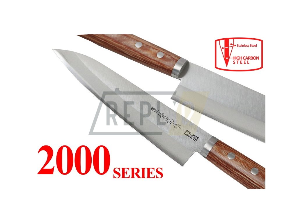Extrémně ostrý nůž Santoku ze série Kanetsune Hon-Warikomi 2000-series. Jádro tohoto nože je vyrobeno z uhlíkové oceli Takefu Shiro 2, které je vložené mezi 2 vrstvy nerezové oceli SUS410. Kuchyňský nůž Santoku je bezohledný kuchyňský válečník, který je připraven na všechna vaše přání. Japonské slovo "santoku" se zhruba označuje jako "tři ctnosti", což svědčí o všestrannosti tohoto nožového stylu a druhu řezů, kterým vyniká (řezání, rozkrájení a mletí).