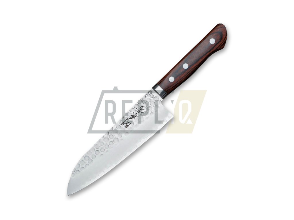 Santoku je dokonalým společníkem při práci s masem, rybami, zeleninou a ovocem. Nepřekonatelné vlastnosti nože oceníte například při krájení cibule. Ostrost čepele zajistí minimální únik tekutiny a vaše pokrmy budou plné šťávy a vitamínů. Široká čepel a oválná rukojeť s trojím nýtováním vám poskytne tu nejlepší kontrolu při řezání a krájení. Japonská preciznost a nové technologie činí tento nůž z oceli VG-1 Stainless steel core/SUS410 Stainless steel (Tsuchime "satin" finish) jedinečným a ideálním jak pro domácí, tak profesionální použití