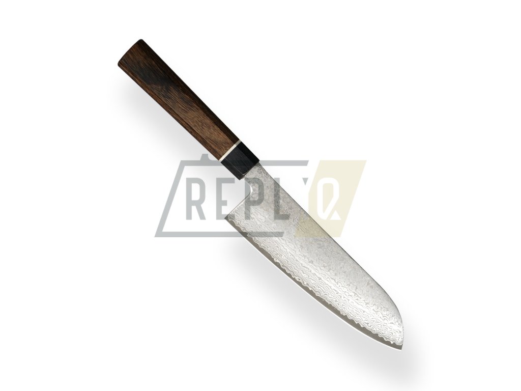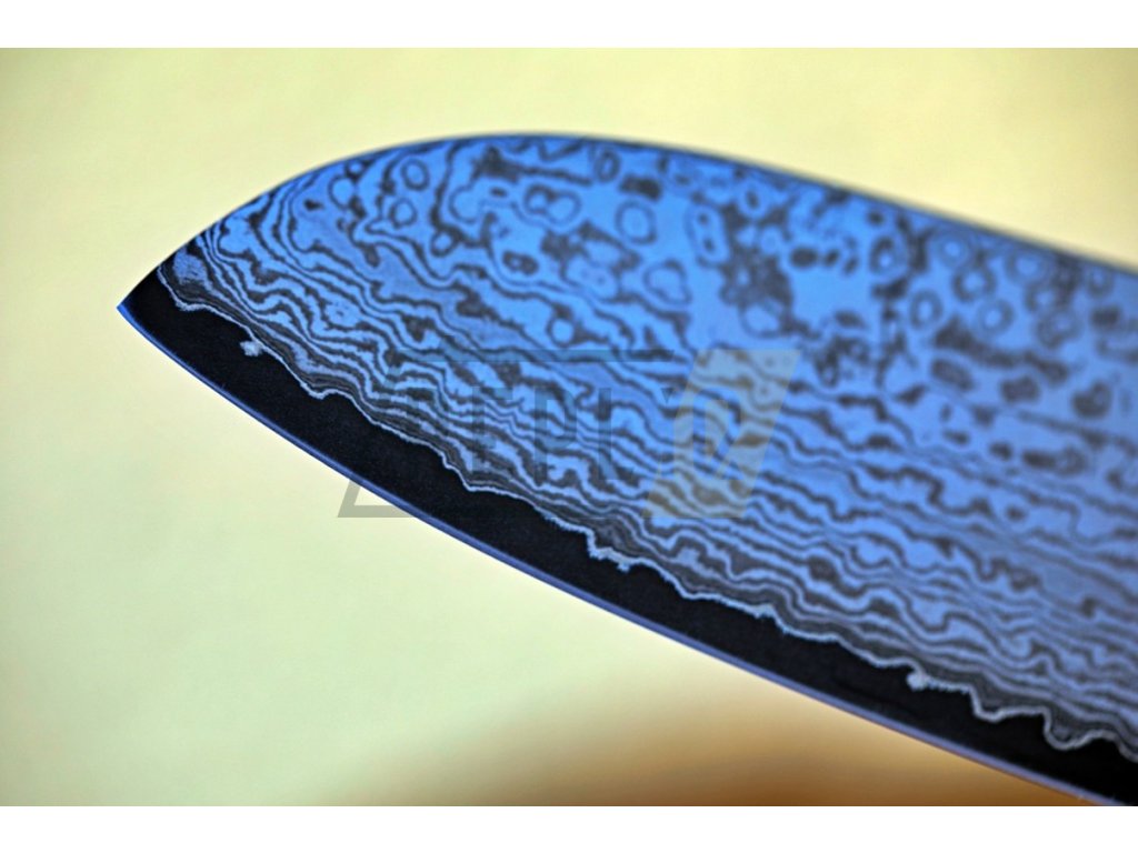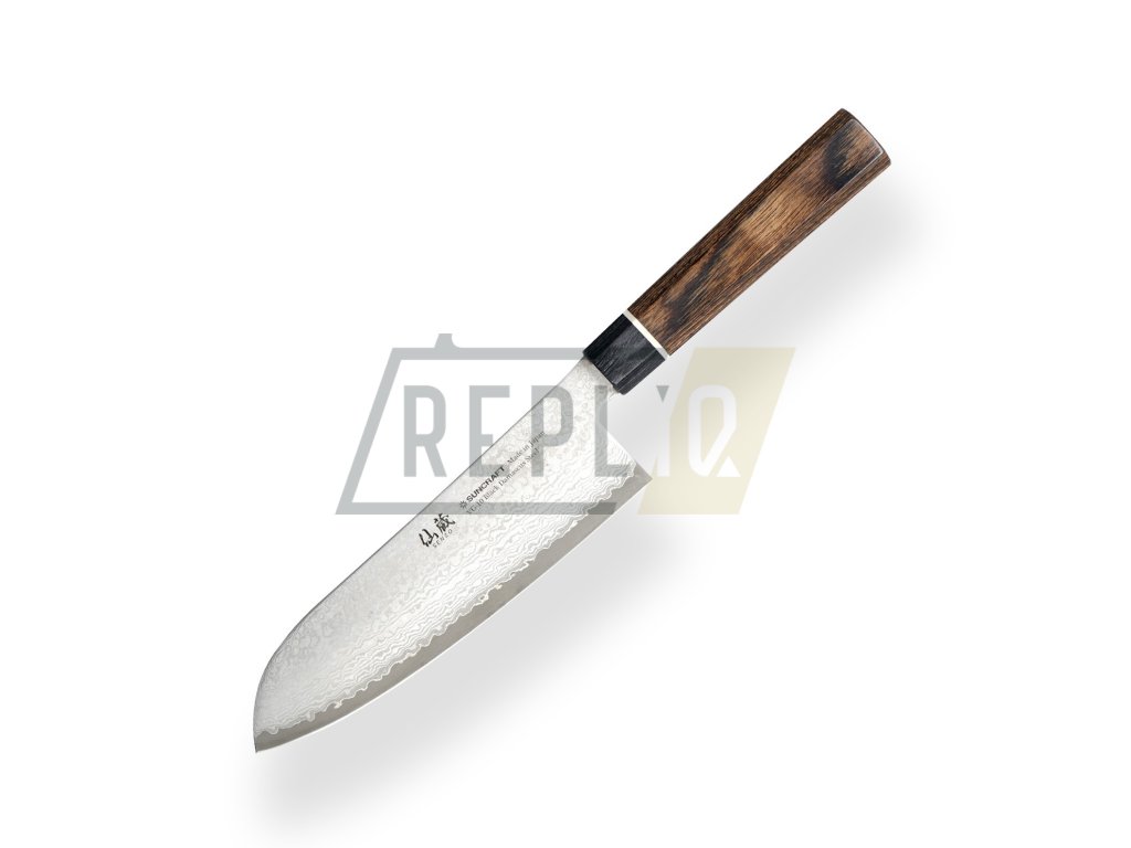 Extrémně ostrý japonský nůž ze série Suncraft VG-10 Black Damascus. Nůž Santoku je bezohledný kuchyňský válečník, který je připraven na všechna vaše přání. Japonské slovo "santoku" se zhruba označuje jako "tři ctnosti", což svědčí o všestrannosti tohoto nožového stylu a druhu řezů, které vyniká (řezání, rozkrájení a mletí). Čepel je obvykle kratší než kuchařský nůž s výrazně odlišnou geometrií. Nůž Santoku je často prohlašován za fúzi mezi šéfkuchařským nožem a Nakiri, což vám přináší výhody obou zmíněných. Vyšší faseta snižuje tření, krájení je tak přesnější. Santoku je dokonalým společníkem při práci s masem, rybami, zeleninou a ovocem. Nepřekonatelné vlastnosti nože oceníte například při krájení cibule. Ostrost čepele zajistí minimální únik tekutiny a vaše pokrmy budou plné šťávy a vitamínů. Široká čepel a příjemná rukojeť vám poskytne tu nejlepší kontrolu při řezání a krájení. Japonské umění, preciznost a nové technologie činí tento nůž z damascénské oceli jedinečným a nenapodobitelným.