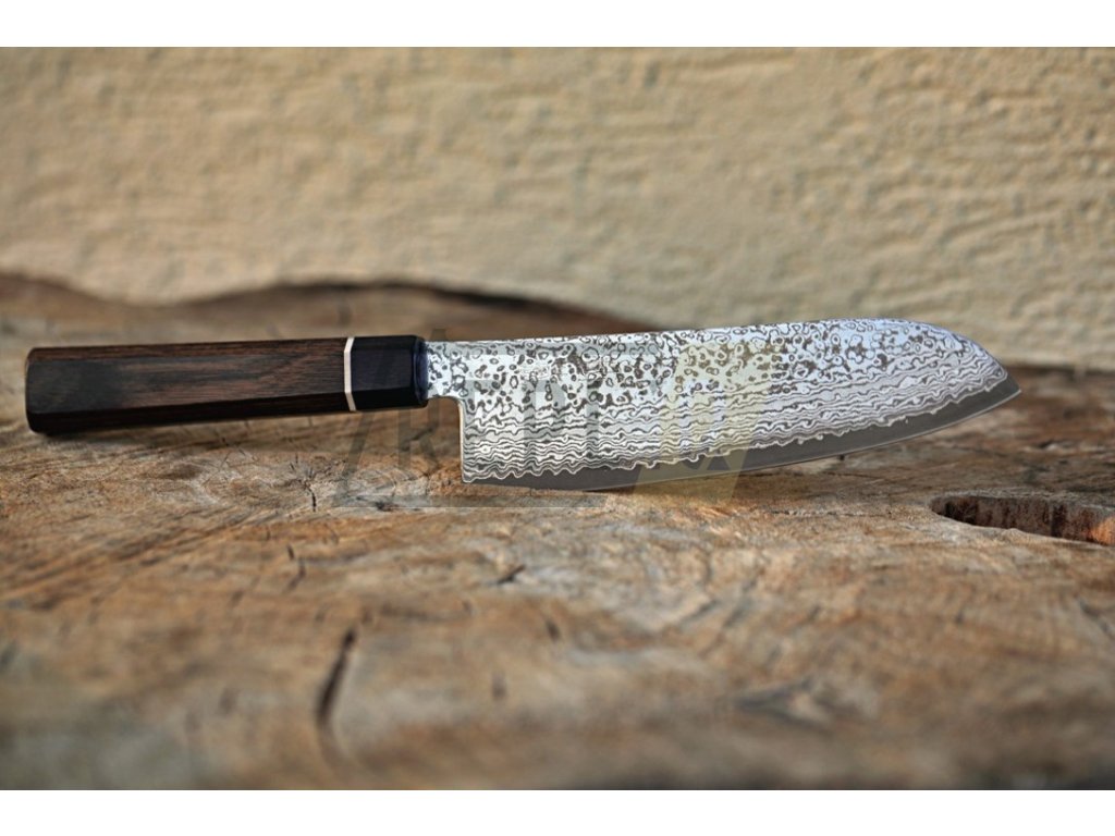 Japonský kuchyňský nůž Santoku/Chef Suncraft VG-10 Black Damascus