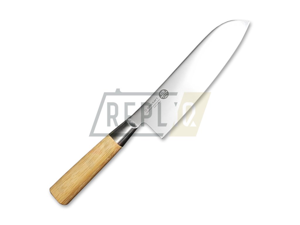 Nůž Santoku je bezohledný kuchyňský válečník, který je připraven na všechna vaše přání. Japonské slovo "santoku" se zhruba označuje jako "tři ctnosti", což svědčí o všestrannosti tohoto nožového stylu a druhu řezů, které vyniká (řezání, rozkrájení a mletí). Čepel je obvykle kratší než kuchařský nůž s výrazně odlišnou geometrií. Nůž Santoku je často prohlašován za fúzi mezi šéfkuchařským nožem a nakiri, což vám přináší výhody obou zmíněných. Ostrost čepele zajistí minimální únik tekutiny a vaše pokrmy budou plné šťávy a vitamínů. Japonské umění a nové technologie činí tento nůž jedinečným a nenapodobitelným.
