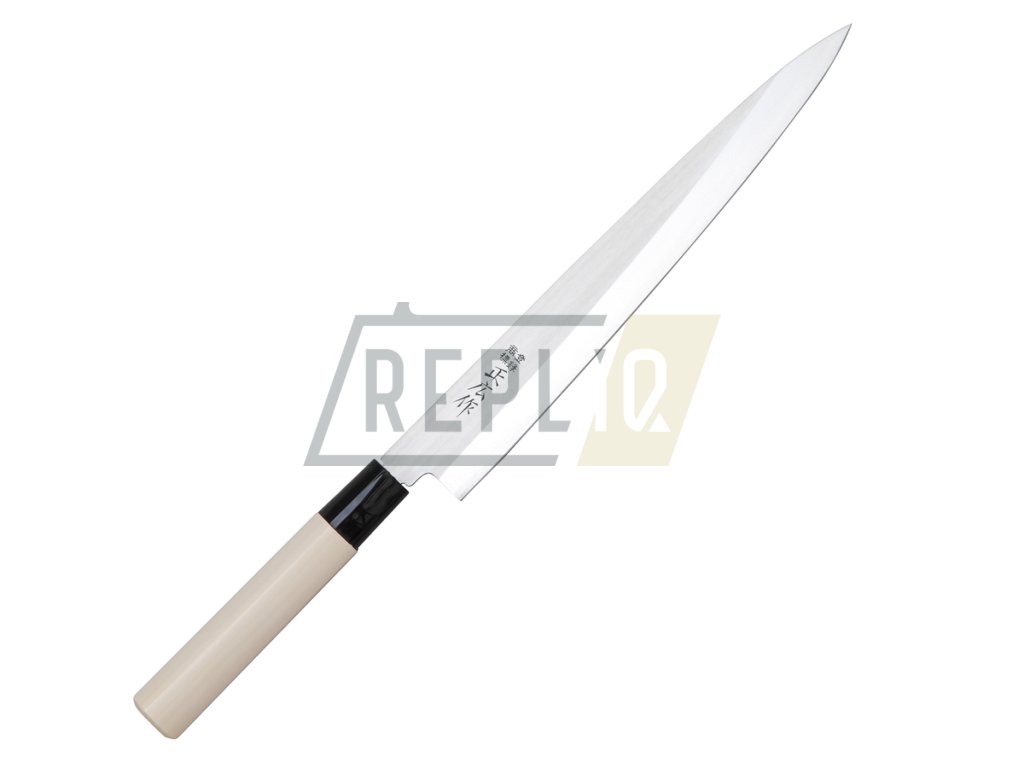 Masahiro Yanagiba s délkou čepele 210 mm je nůž s dlouhou, štíhlou čepelí, který lze použít k velmi tenkému krájení nebo filetování ryb. V asijské kuchyni Yanagiba se nejčastěji používá při přípravě sushi nebo sashimi. Pro tradiční japonské nože je charakteristické, že je naostřený na jedné straně, což umožňuje přesné a plně kontrolované krájení produktů, které se snadno oddělují od nože a odhalují krásný a lesklý řezný povrch - což je v japonské kuchyni zásadní a ceněný detail. Yanagi v japonštině znamená vrba a samotný název nože pravděpodobně odkazuje na dlouhé a pružné větve tohoto stromu.