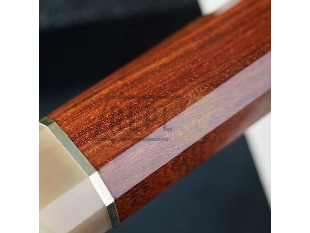 Rukojeť ve tvaru oktagonu je vyrobena z elegantního dřeva Rose-wood se zakončením (bolstrem) z pravého bůvolího rohu světlé barvy. Dřevo Rose-wood je exotický druh dřeva, které má červenohnědou barvu s fialovými podtóny. V kombinaci s buvolím rohem vypadá rukojeť opravdu překrásně. Rukojeti jsou navrženy tak, aby dokonale padly do ruky a poskytovaly pohodlí. Nože jsou dokonale vyvážené a zabraňují únavě rukou. Tím je zajištěna maximální kontrola a přesnost.