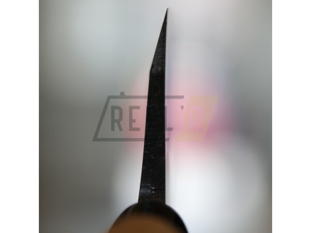 Upozornění: není nerezová. Po použití nůž vždy opláchněte, důkladně osušte a podle potřeby potřete ochranným olejem. Vyhněte se delšímu kontaktu s vodou a kyselými surovinami. Koroze může vzniknout pouze na řezném jádru, ne na celé čepeli. Přečtěte si informace o oceli.