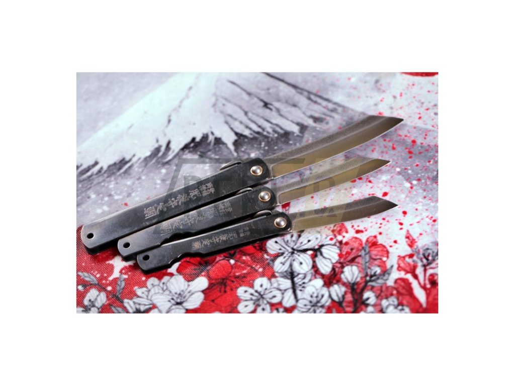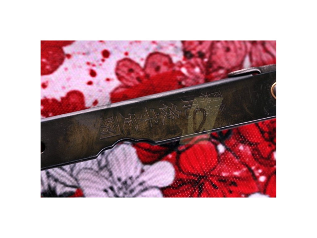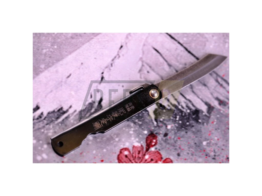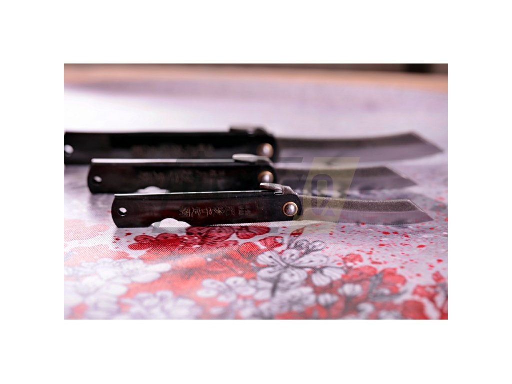 Čepel je vyráběna z vysoce uhlíkové oceli, která je velmi ostrá a odolná. Ta je vložena do rukojeti, která je vyrobená z mosazi nebo černě barveného kusa železa následně zdobeného portréty, květinami, zvířaty nebo krajinou. Kompaktní, lehký a historií opředený zavírací kapesní nůž Higonokami není jen čepel - je to kulturní artefakt, který hladce spojuje minulost se současností. Noste u sebe denně kus japonského dědictví, kde každý řez vypráví příběh řemeslné zručnosti a odolnosti.
