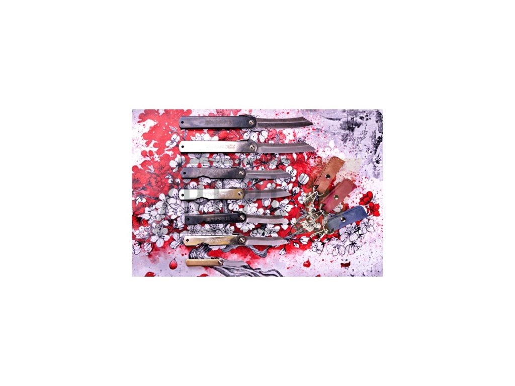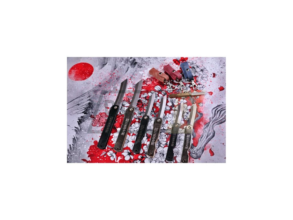 Čepel je vyráběna z vysoce uhlíkové oceli, která je velmi ostrá a odolná. Ta je vložena do rukojeti, která je vyrobená z mosazi nebo černě barveného kusa železa následně zdobeného portréty, květinami, zvířaty nebo krajinou. Kompaktní, lehký a historií opředený zavírací kapesní nůž Higonokami není jen čepel - je to kulturní artefakt, který hladce spojuje minulost se současností. Noste u sebe denně kus japonského dědictví, kde každý řez vypráví příběh řemeslné zručnosti a odolnosti.