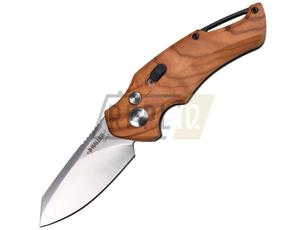 Kompaktní, elegantní kapesní nůž Haller Select EimurTento kompaktní a elegantní zavírací kapesní nůž lze otevřít bleskovou rychlostí pomocí tlačítka. Na zadní straně je připevněna klip na opasek.