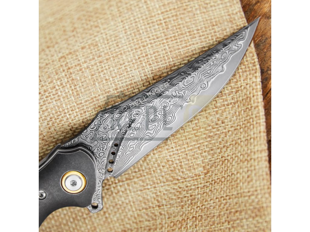 Zavírací nůž Dellinger Paiku má jádro z damaškové oceli VG-10 vložené mezi 66 vrstev 2 nerezových damaškových ocelí. Díky tomu dosahuje tvrdosti kolem 59-61 HRC, proto je nůž mimořádně ostrý po dlouhou dobu. Navíc vrstvená damašková ocel s povrchovou úpravou black coating působí prostě nádherně. Čepel je uložena v keramických ložiscích, díky čemuž je otevírání snadné a plynulé. Pojistka liner lock zajišťuje, že se nůž samovolně nezavře a vy se na něj tak můžete vždy spolehnout. Tento nůž patří do skupiny EDC, můžete ho nosit u sebe při každé příležitosti. Rukojeť je ze dřeva stabilizovaného javoru. Stabilizované znamená, že dřevo je napuštěné epoxidovou pryskyřicí, díky které je pak odolné vůči vodě, nesmršťuje se, nepraská a lze jej snadno tvarovat do požadovaných tvarů.