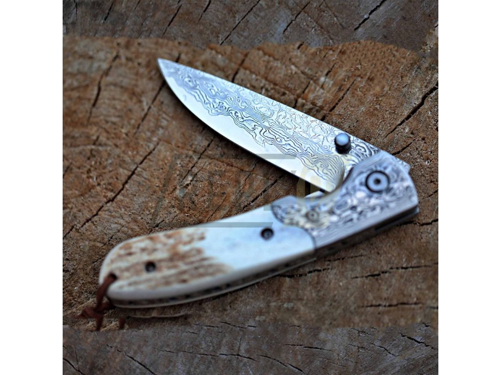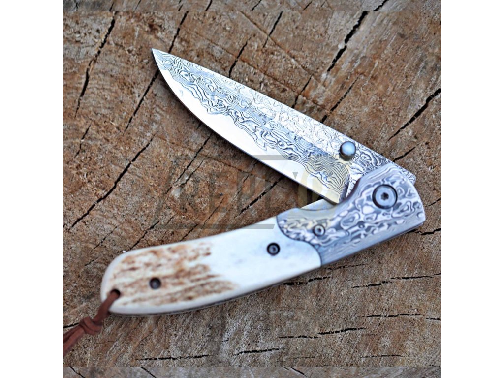 Zavírací damaškový nůž Dellinger Weidmann, VG-10 & rukojeť z paroží + Sleva 200,- Kč s kódem "DELI200"
