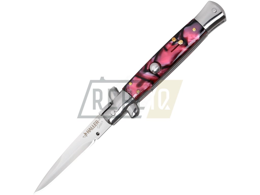 Stiletto vyskakovací nůž Haller Select Sprogur červenýČepel stiletto nože s vyskakovací čepelí lze bleskově otevřít stisknutím tlačítka. Pojistka v rukojeti zabraňuje náhodnému vyskočení čepele.