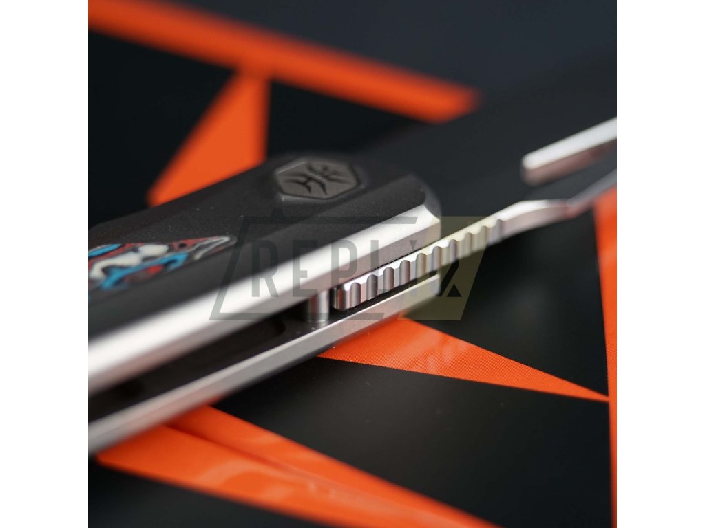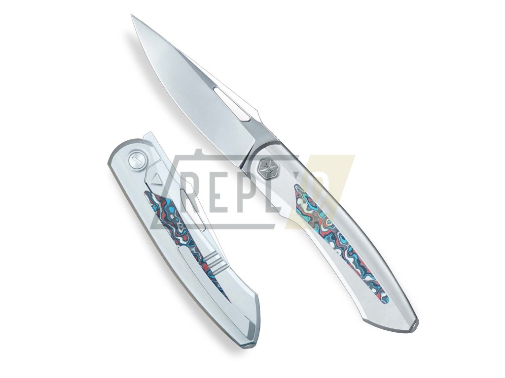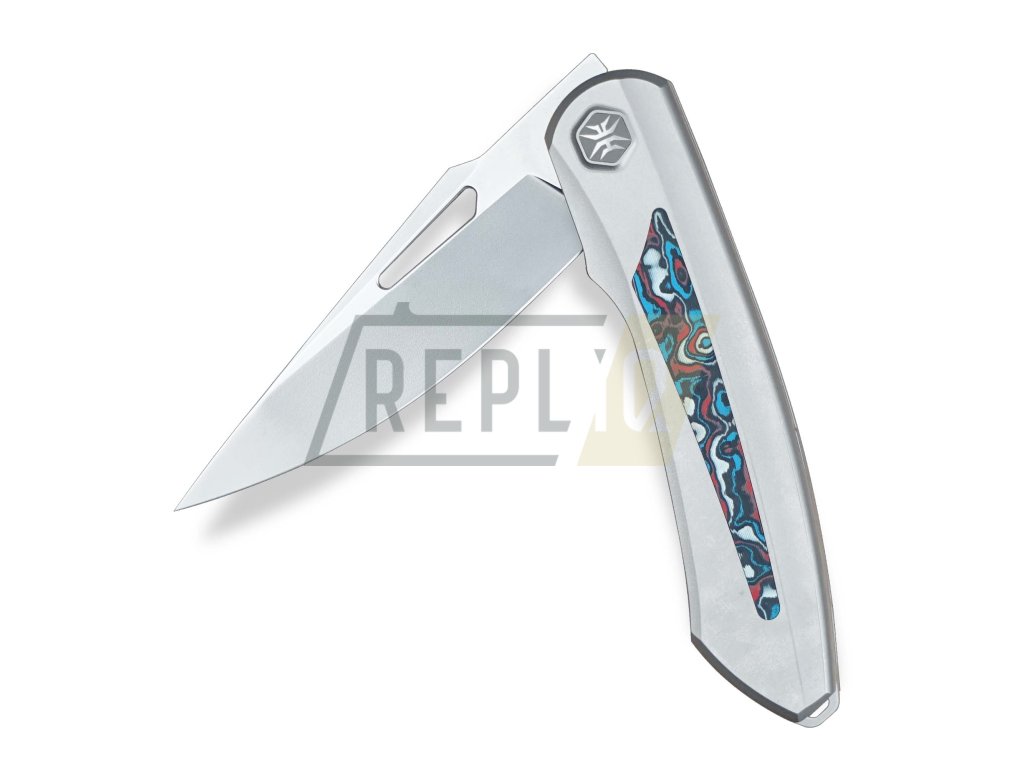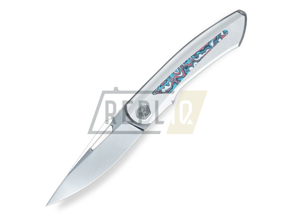 Nůž KH Falcon je vybaven čepelí z práškové oceli Bohler M390 Microclean, která dosahuje vysoké tvrdosti okolo 62 HRC. Vysoká houževnatost a odolnost vůči opotřebení je samozřejmostí pro jednu z nejlepších ocelí, které jsou momentálně k dispozici. Čepel tohoto nože ve tvaru Spear Point, nabízí výjimečný řezný výkon a styl. Tvarovaná titanová rukojeť 6AL4V s integrovanou pojistkou frame-lock zajistí pohodlný úchop a bezpečné zajištění čepeli v otevřeném stavu. Rukojeť ve vzhledu arktické bouře s příložkami z uhlíkových vláken kombinuje styl a funkčnost. Nádherné a prvotřídní materiály se spojily ve vysoce funkční a velmi elegantní zavírací nůž. Rozšiřte svou sbírku o tento nepostradatelný a jedinečný kousek.