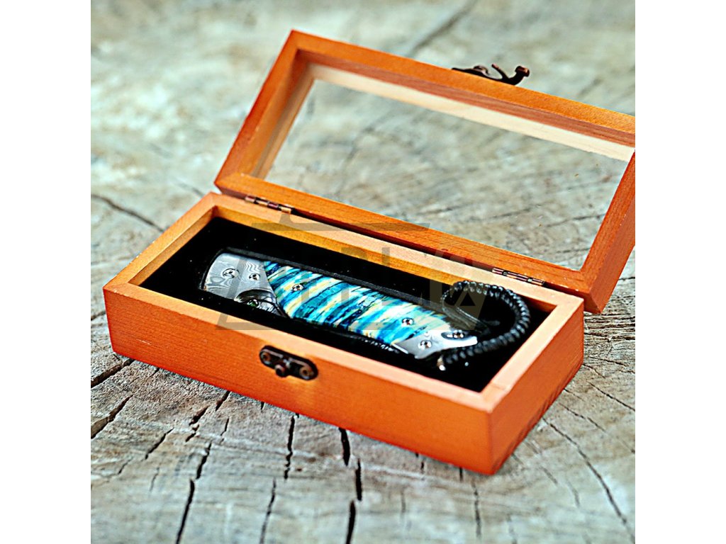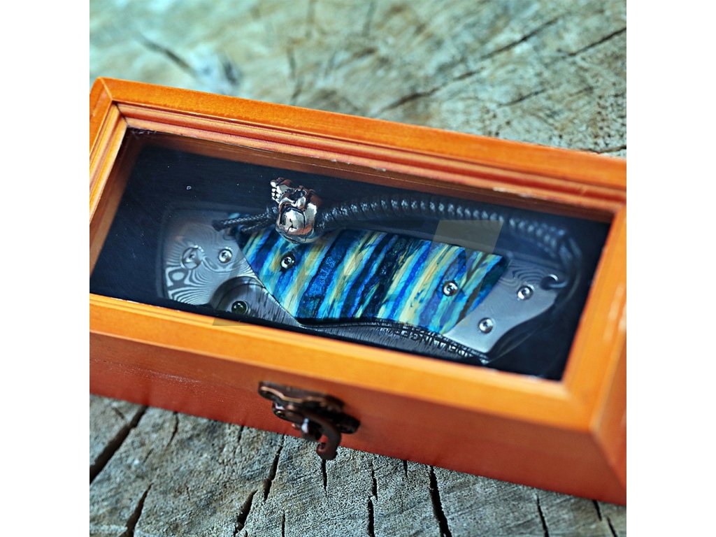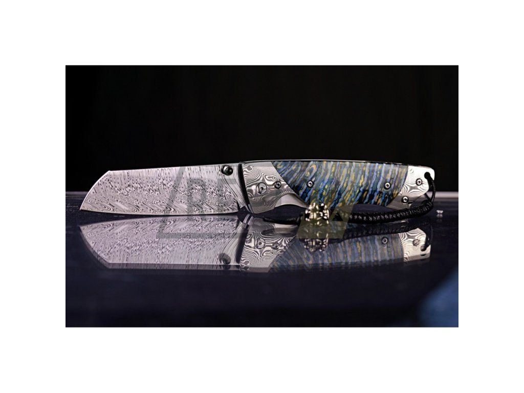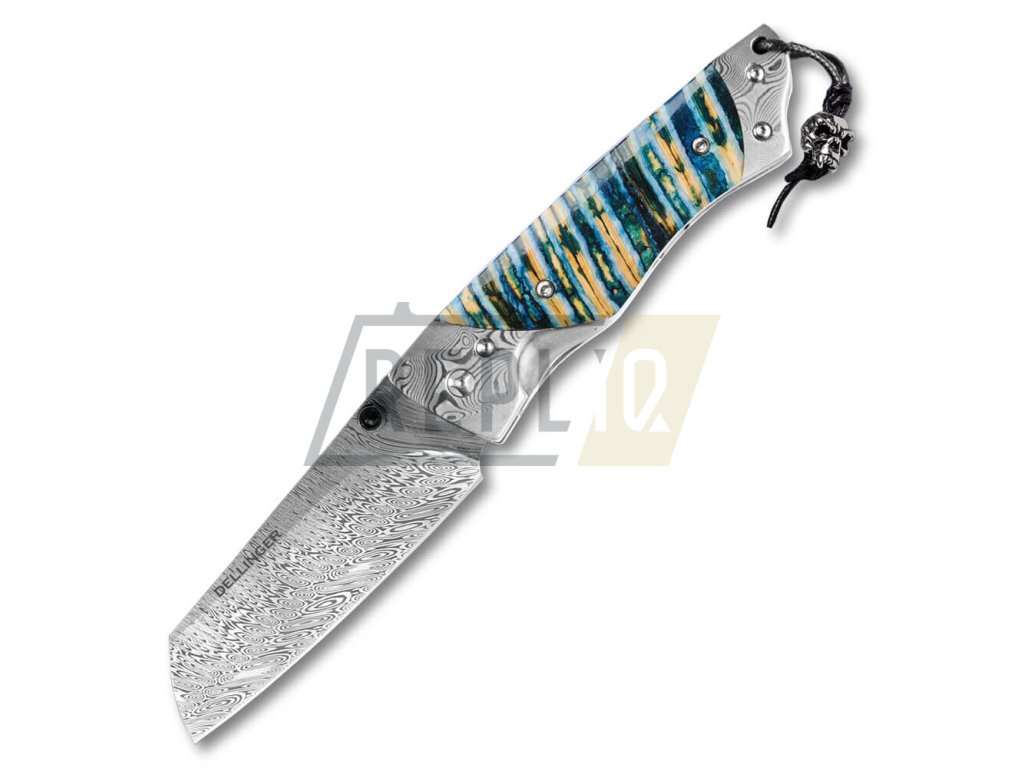 Elegantní zavírací nůž Dellinger Angriperen má čepel ze švédské práškové oceli RWL34. To je vysoce kvalitní nerezová ocel. Díky její tvrdosti je nůž mimořádně ostrý po dlouhou dobu. Také je velmi odolná proti opotřebení. Jedná se o plně použitelný lovecký nůž, který může být dokonalým dárkem pro každého lovce či myslivce. Rukojeť je ze vzácné mamutí stoličky různých barev, bolstr je z lesklé nerezové oceli. Na konci je otvor pro paracord s provlečenou koženou šňůrkou s příveskem lebky. Rukojeť má tvar, který ideálně padne do každé ruky. Nůž dodáváme v krásné dřevěné krabičce.